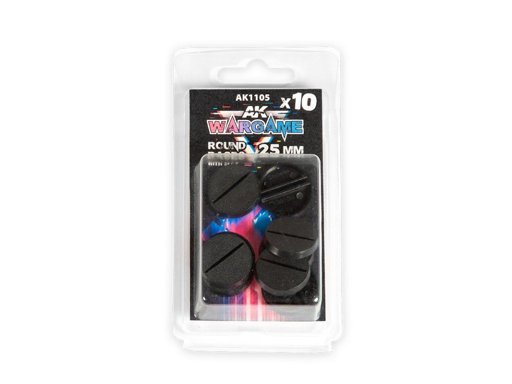 AK Interactive Round Bases with Lip je sada plastových kulatých podstavců v černé barvě určená pro figurky a miniatury. Podstavce mají otevřený střed a pevný okraj po obvodu. Jsou vhodné pro modelování, konverze i další úpravy miniatur a podstavců.