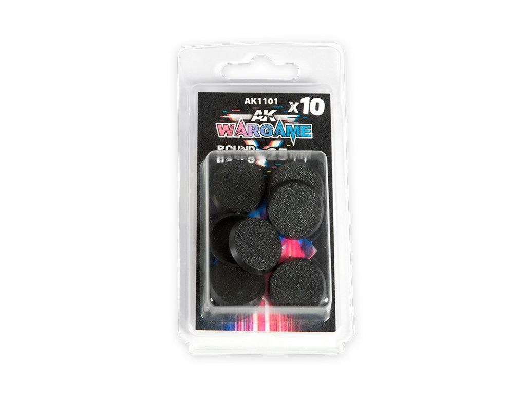 AK Interactive Round Bases je sada plastových kulatých podstavců v černé barvě určená pro figurky a miniatury. Podstavce mají nízký profil a průměr 25 mm, který patří mezi nejčastěji používané velikosti pro tabletop miniatury.