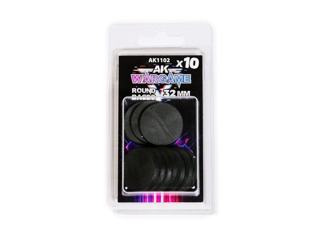 AK Interactive Round Bases je sada plastových kulatých podstavců v černé barvě určená pro figurky a miniatury. Podstavce mají nízký profil a průměr 32 mm, který se často používá pro větší pěší miniatury nebo hrdiny ve wargamingových hrách.