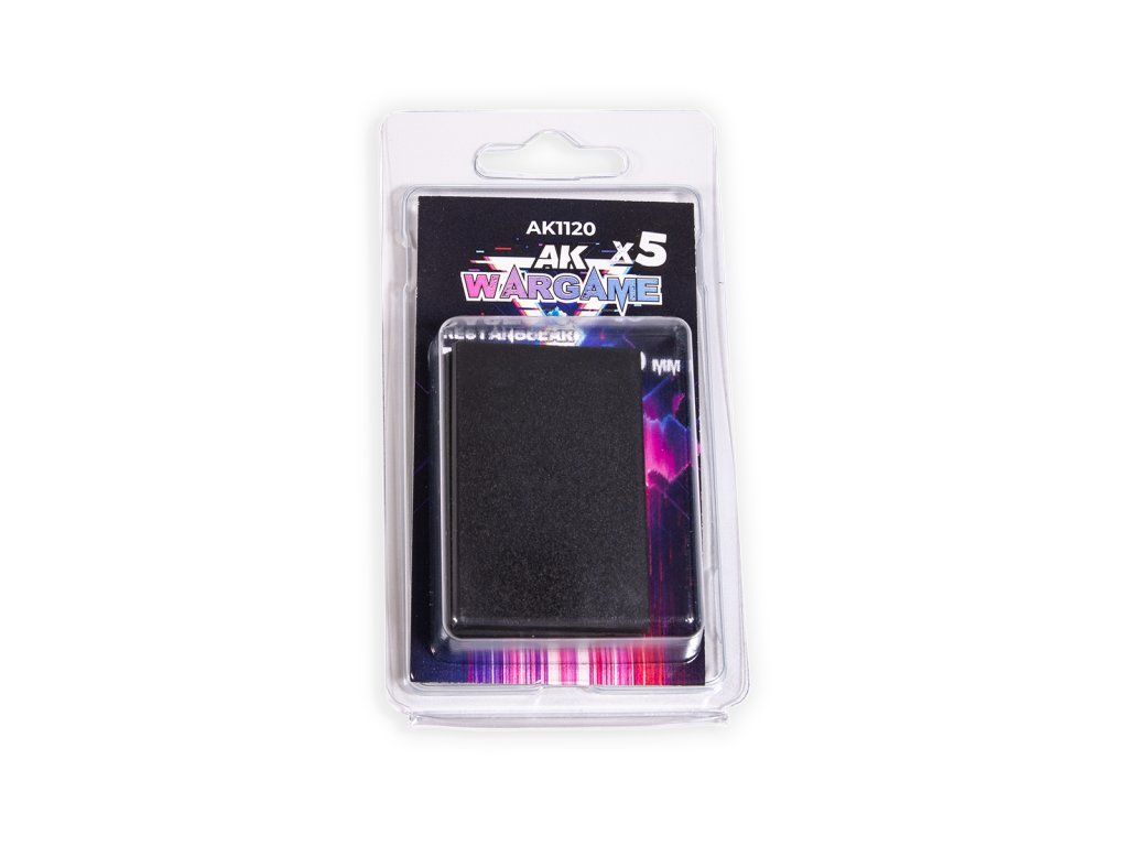AK Interactive Rectangular Bases je sada plastových obdélníkových podstavců v černé barvě určená pro figurky a miniatury. Podstavce mají nízký profil a rozměr 60×40 mm, který je vhodný pro větší modely, kavalerii nebo speciální jednotky ve wargamingových hrách.