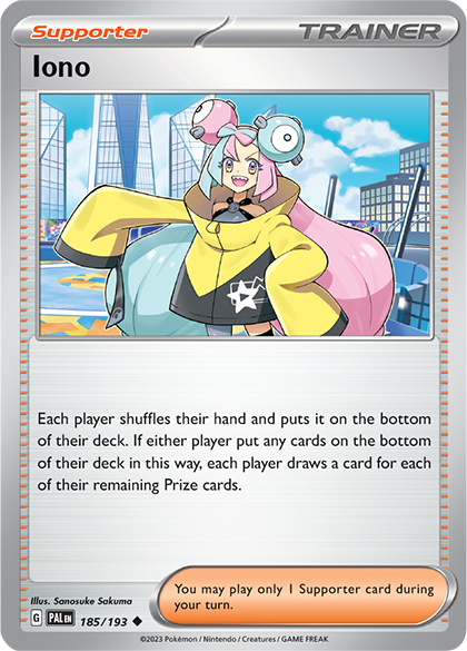 Trainer karty bývají obvykle těmi, které po rotaci chybí nejvíce, protože některé z nich jsou základem téměř každého decku. Největší ztrátou této rotace je bezpochyby Iono. Momentálně jde o jedinou disruption kartu ve formátu, která škáluje svůj efekt podle počtu získaných Prize karet, a funguje jako silný vyrovnávací prvek v situacích, kdy má jeden hráč náskok v jejich sbírání. Kromě toho Iono zároveň poskytuje solidní konzistenci v early game, čímž si dále upevňuje svou pozici jako staple ve většině decků.