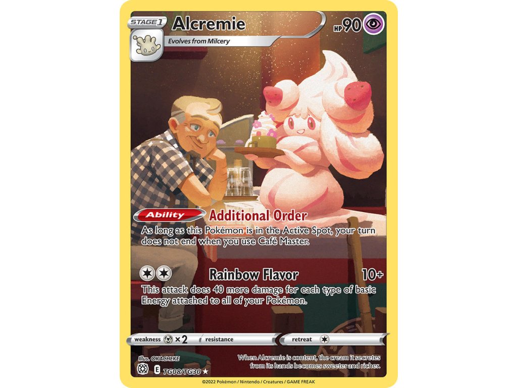 Tato Pokémon TCG kusová karta Alcremie je z edice Brilliant Stars. Tato karta je Illustration Rare rarity a má regulační značku E.