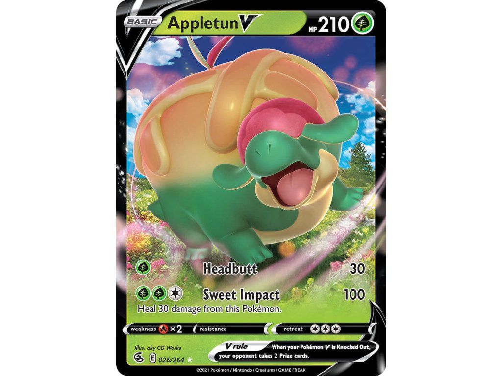 Tato Pokémon TCG kusová karta Appletun V je z edice Fusion Strike. Tato karta je Ultra Rare rarity a má regulační značku E.