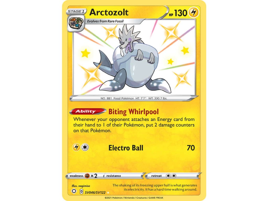 Tato Pokémon TCG kusová karta Arctozolt je z edice Shining Fates. Tato karta je Shiny Rare rarity a má regulační značku D.