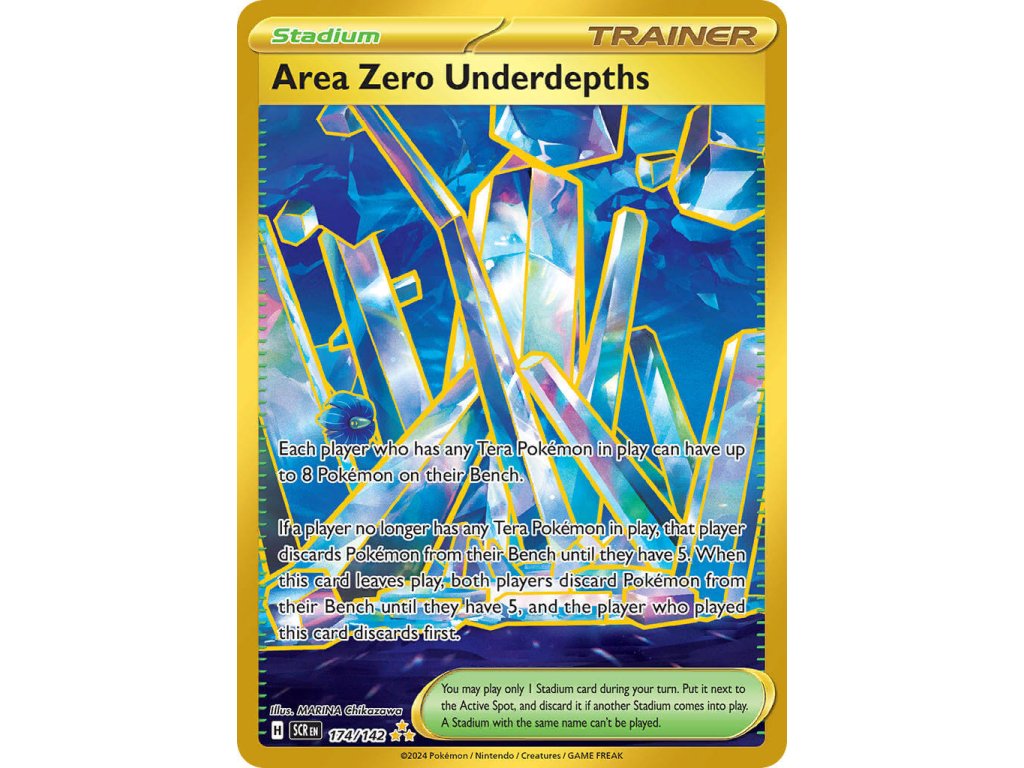 Tato Pokémon TCG kusová karta Area Zero Underdepths je z edice Stellar Crown. Tato karta je Hyper Rare rarity a má regulační značku H.