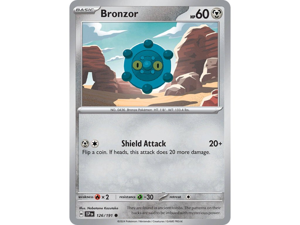 Tato Pokémon TCG kusová karta Bronzor je z edice Surging Sparks. Tato karta je Common rarity a má regulační značku H.