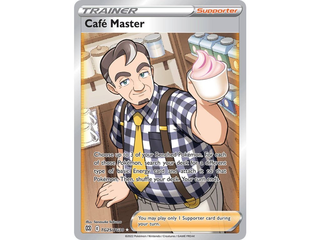 Tato Pokémon TCG kusová karta Café Master je z edice Brilliant Stars. Tato karta je Ultra Rare rarity a má regulační značku E.