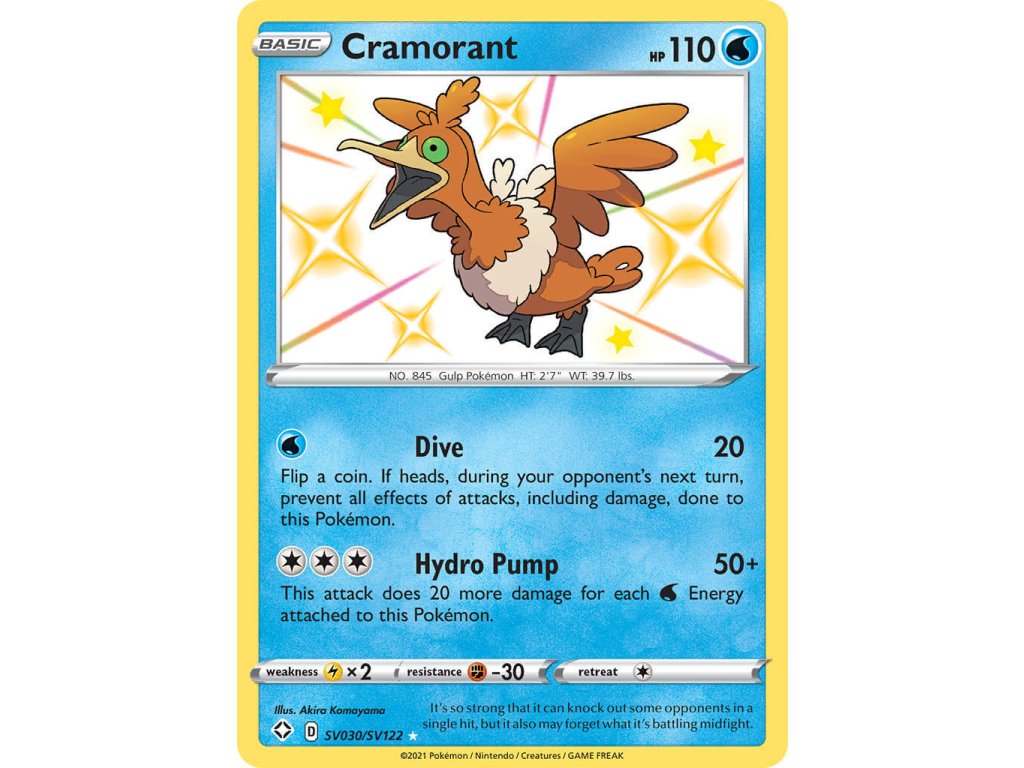Tato Pokémon TCG kusová karta Cramorant je z edice Shining Fates. Tato karta je Shiny Rare rarity a má regulační značku D.