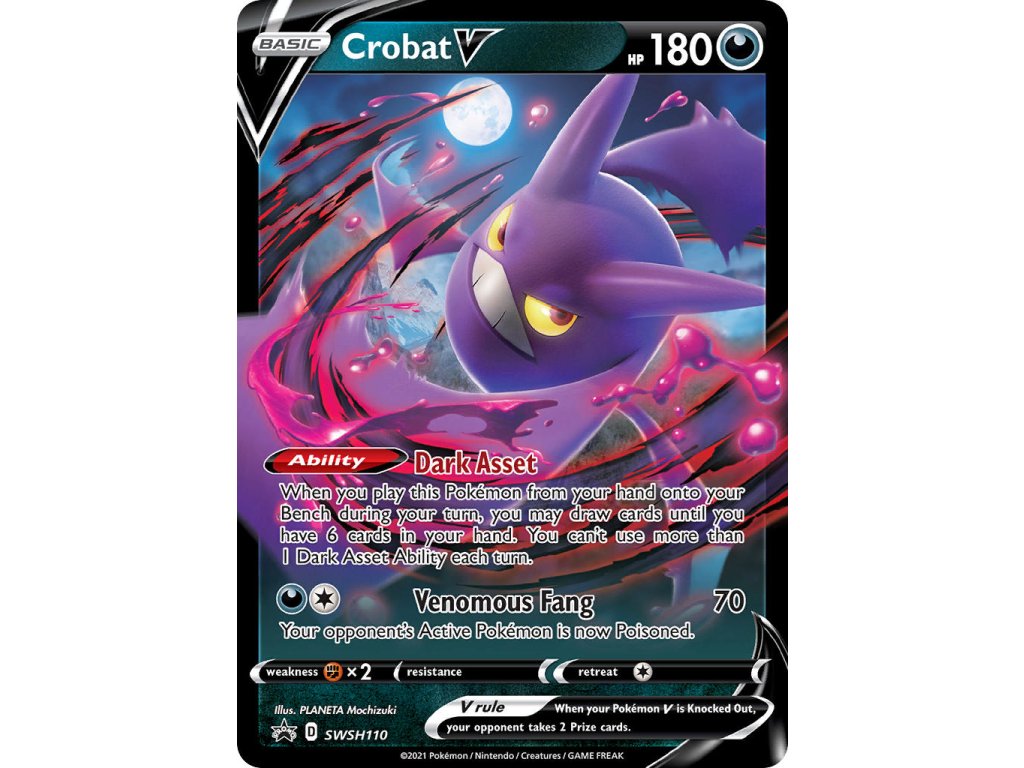 Tato Pokémon TCG kusová karta Crobat V je SWSH Black Star Promo. Tato karta je Promo rarity má regulační značku D.