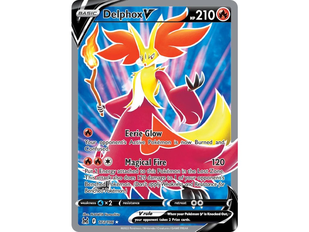 Tato Pokémon TCG kusová karta Delphox V je z edice Lost Origin. Tato karta je Ultra Rare rarity a má regulační značku F.