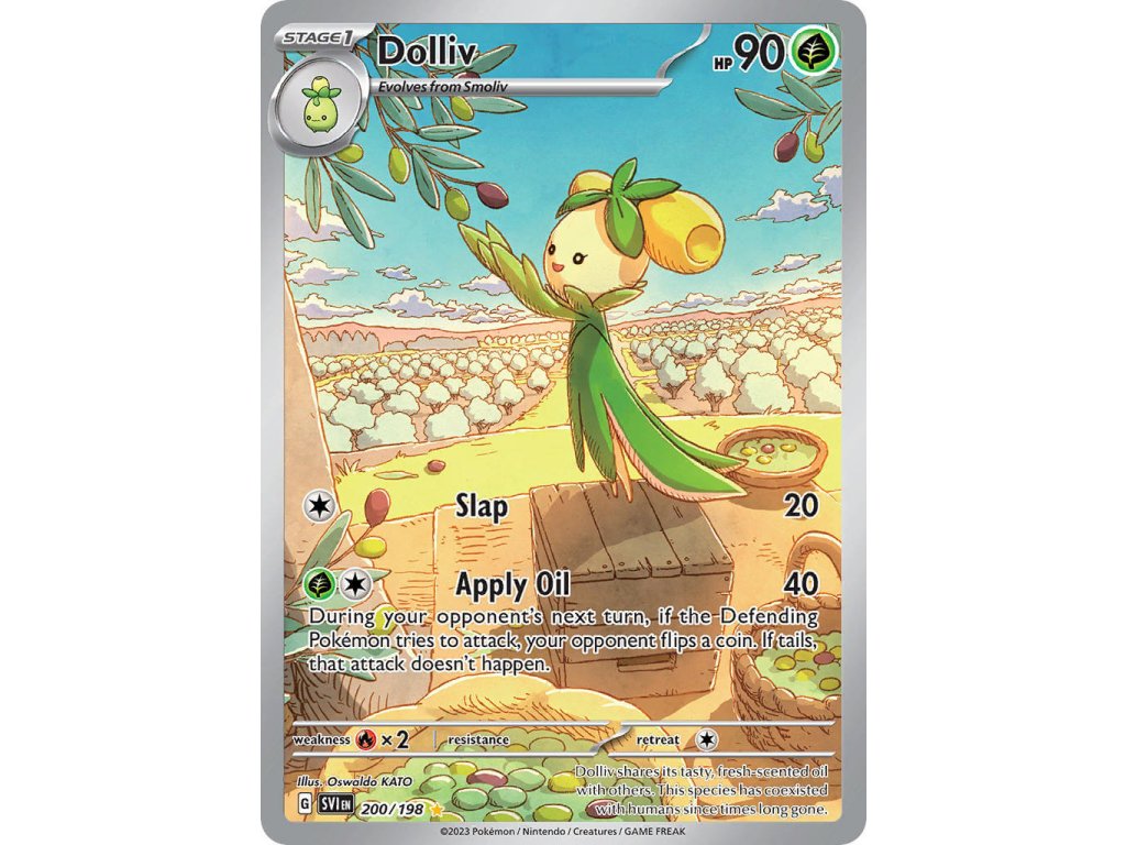 Tato Pokémon TCG kusová karta Dolliv je z edice Scarlet and Violet. Tato karta je Illustration Rare rarity a má regulační značku G.