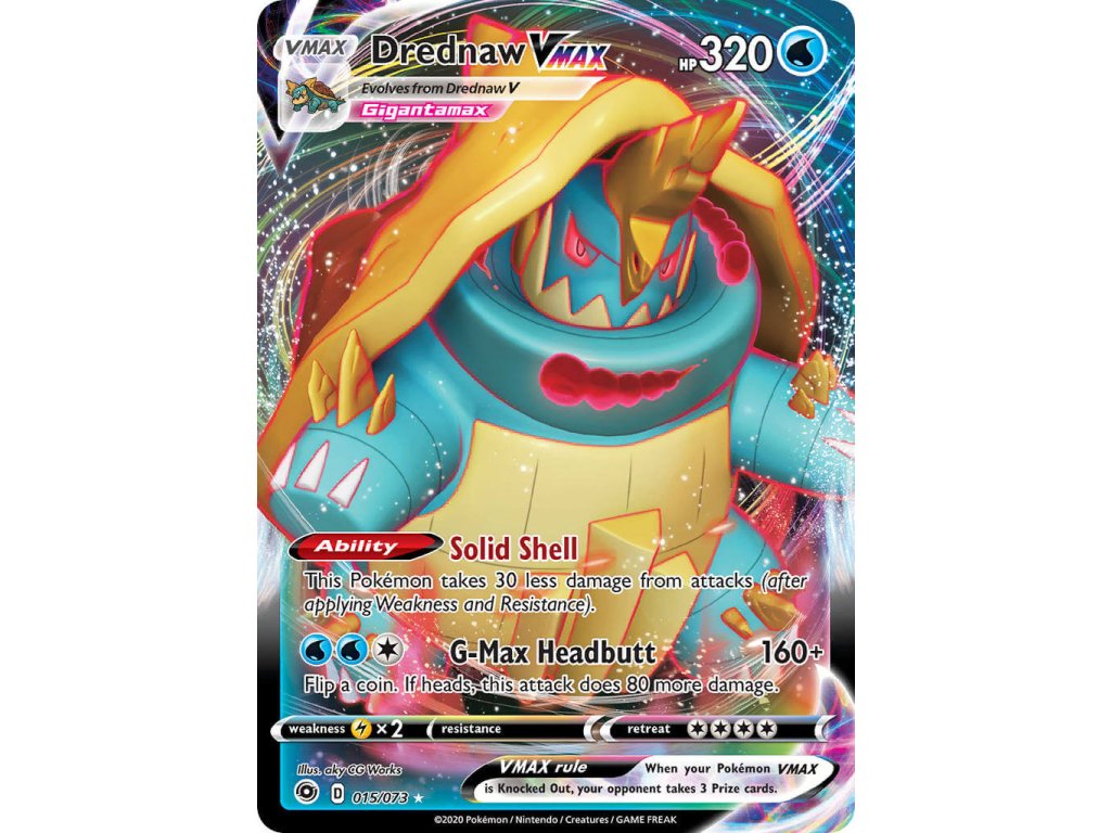 Tato Pokémon TCG kusová karta Drednaw VMAX je z edice Champion’s Path. Tato karta je Ultra Rare rarity a má regulační značku D.