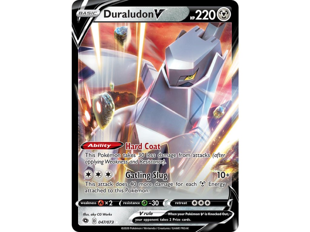 Tato Pokémon TCG kusová karta Duraludon V je z edice Champion’s Path. Tato karta je Ultra Rare rarity a má regulační značku D.