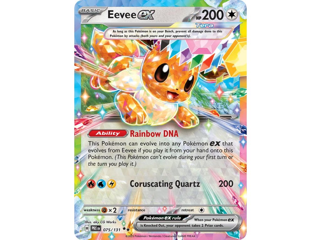 Tato Pokémon TCG kusová karta Eevee ex je z edice Prismatic Evolutions. Tato karta je Double Rare rarity a má regulační značku H.