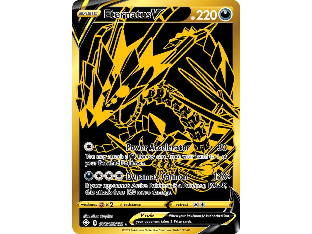 Tato Pokémon TCG kusová karta Eternatus V je z edice Shining Fates. Tato karta je Secret Rare rarity a má regulační značku D.