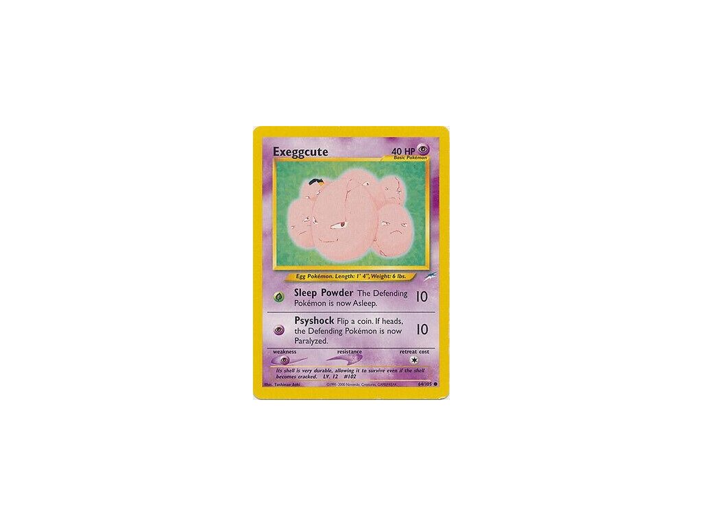 Tato Pokémon TCG kusová karta Exeggcute je z edice Neo Destiny. Tato karta je Common rarity.