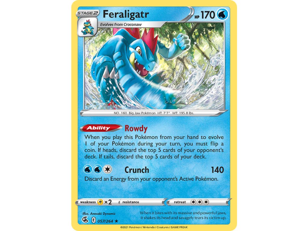 Tato Pokémon TCG kusová karta Feraligatr je z edice Fusion Strike. Tato karta je Holo Rare rarity a má regulační značku E.