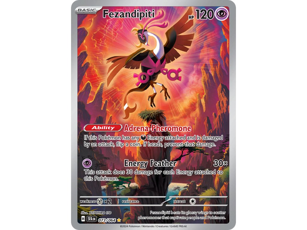 Tato Pokémon TCG kusová karta Fezandipiti je z edice Shrouded Fable. Tato karta je Illustration Rare rarity a má regulační značku H.