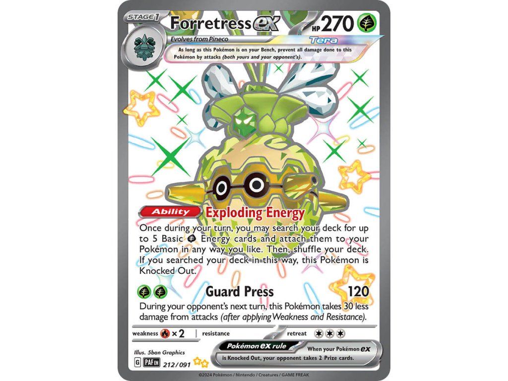 Tato Pokémon TCG kusová karta Forretress ex je z edice Paldean Fates. Tato karta je Shiny Ultra Rare rarity a má regulační značku G.