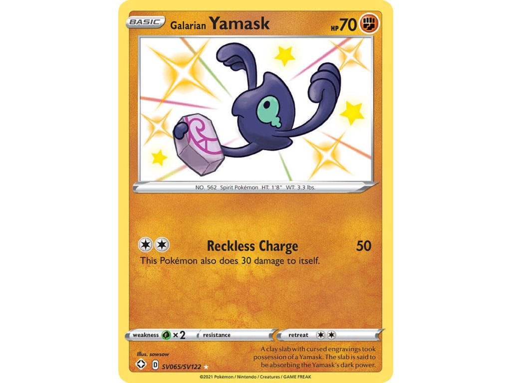 Tato Pokémon TCG kusová karta Galarian Yamask je z edice Shining Fates. Tato karta je Shiny Rare rarity a má regulační značku D.