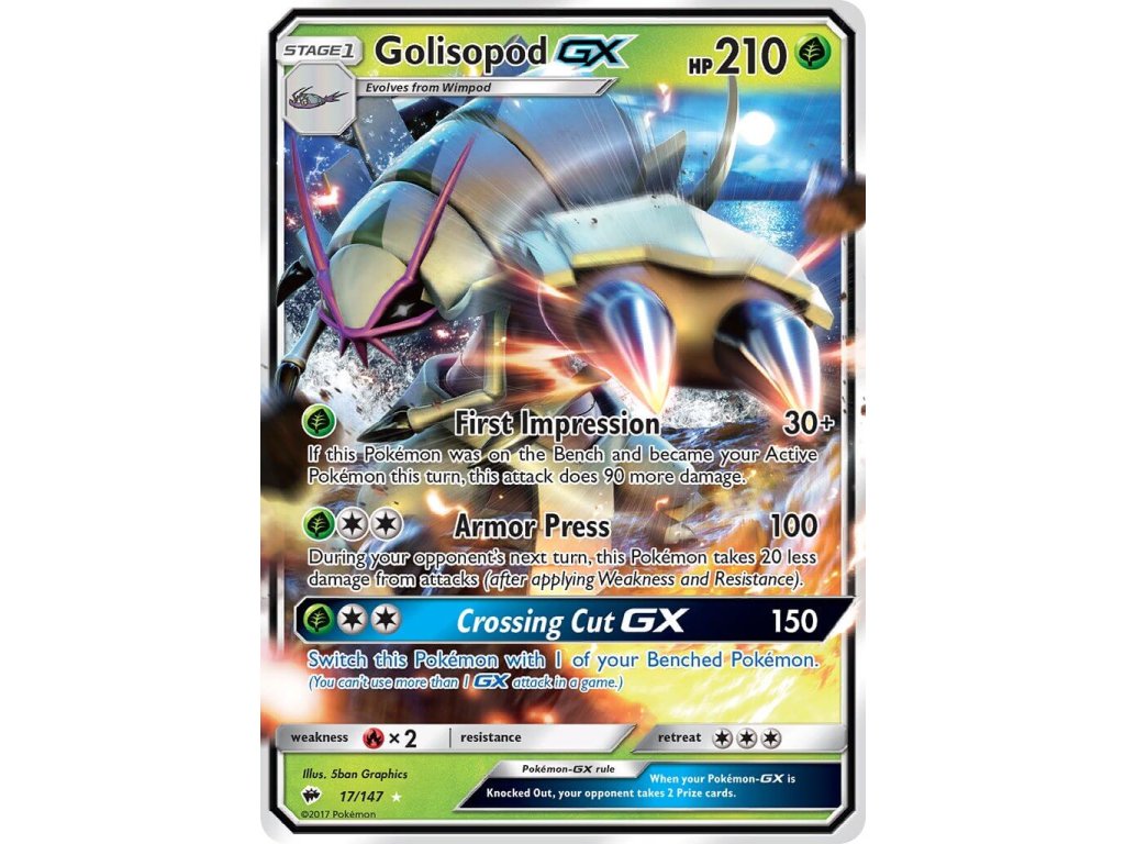 Tato Pokémon TCG kusová karta Golisopod GX je z edice Burning Shadows. Tato karta je Ultra Rare rarity.