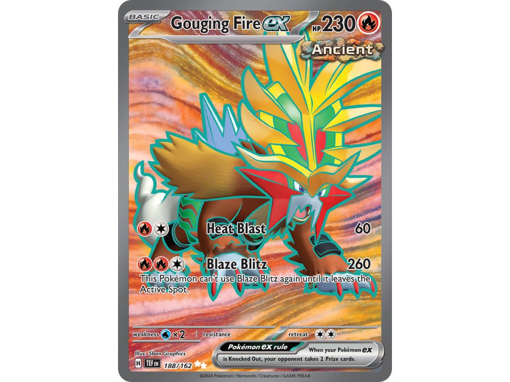 Tato Pokémon TCG kusová karta Gouging Fire ex je z edice Temporal Forces. Tato karta je Ultra Rare rarity a má regulační značku H.