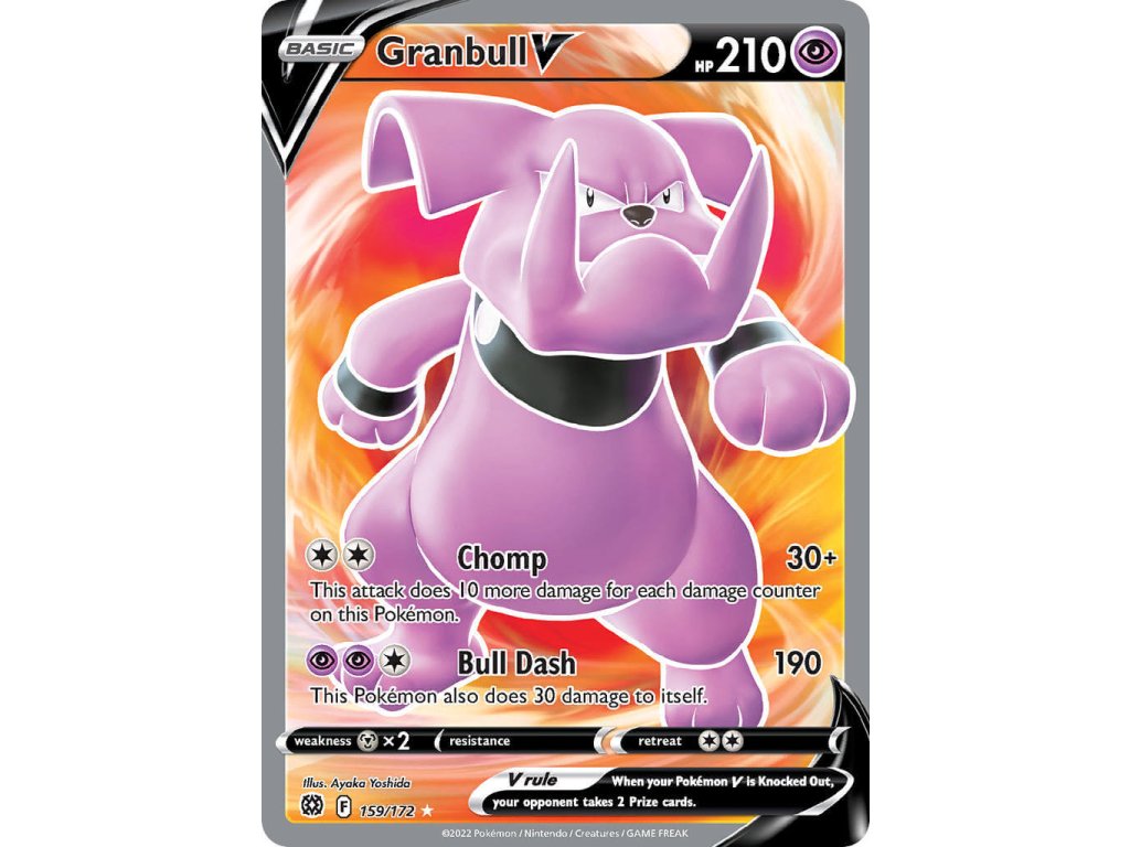 Tato Pokémon TCG kusová karta Granbull V je z edice Brilliant Stars. Tato karta je Ultra Rare rarity a má regulační značku F.