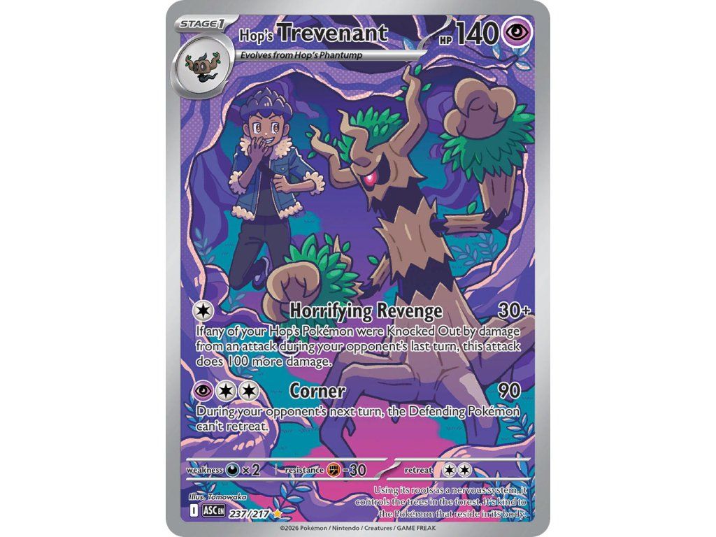 Tato Pokémon TCG kusová karta Hop's Trevenant je z edice Ascended Heroes. Tato karta je Illustration Rare rarity a má regulační značku I.