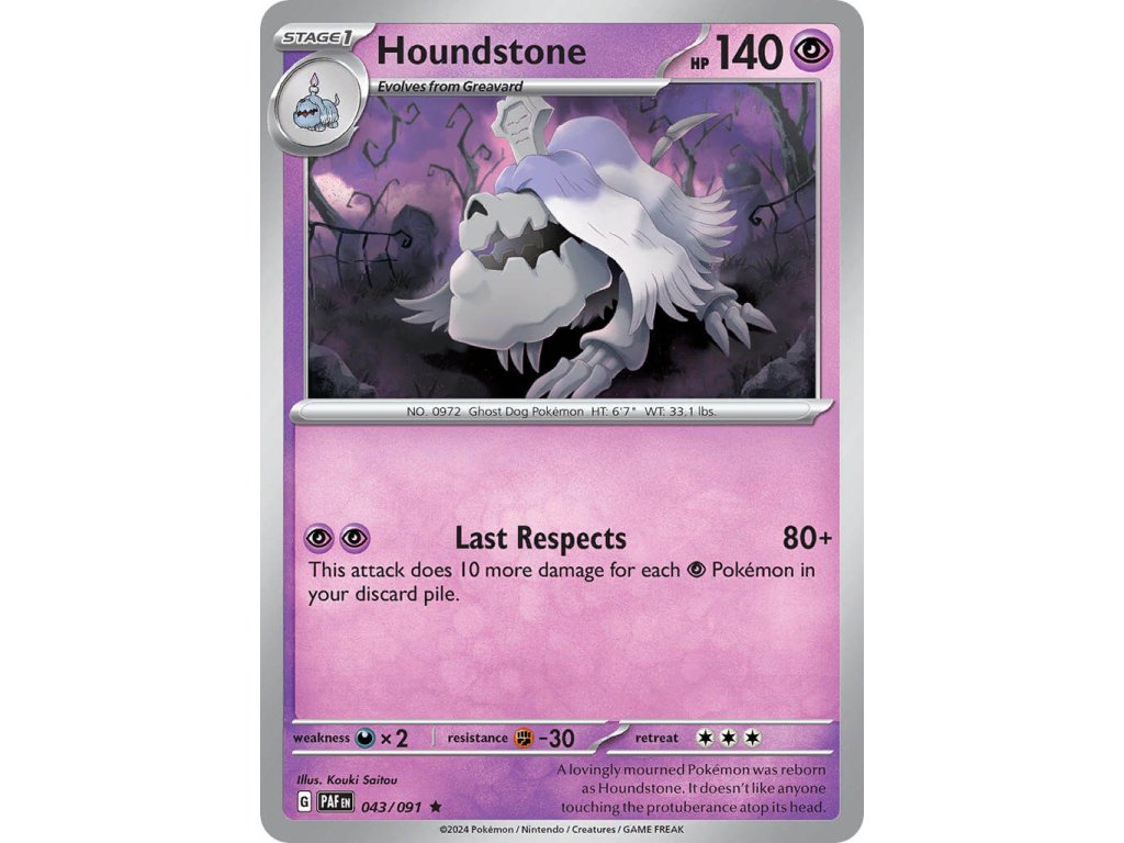 Tato Pokémon TCG kusová karta Houndstone je z edice Paldean Fates. Tato karta je Rare rarity a má regulační značku G.