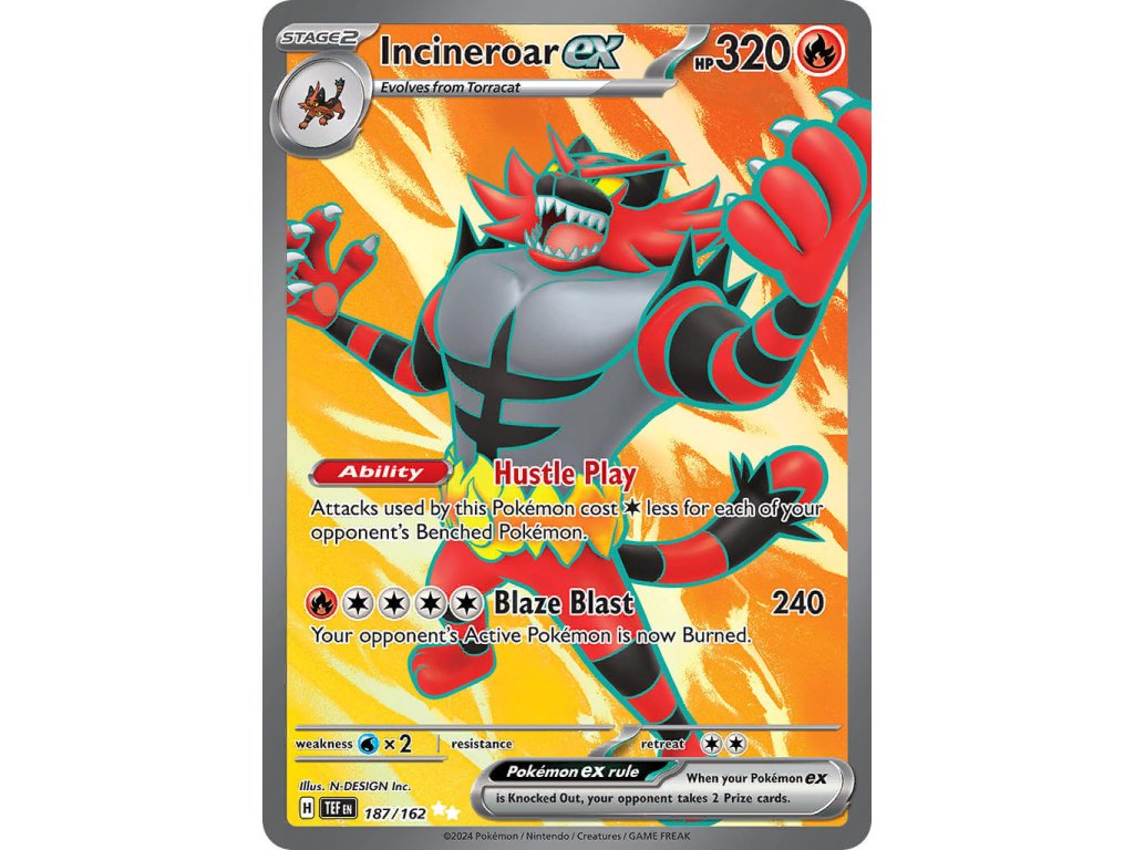 Tato Pokémon TCG kusová karta Incineroar ex je z edice Temporal Forces. Tato karta je Ultra Rare rarity a má regulační značku H.