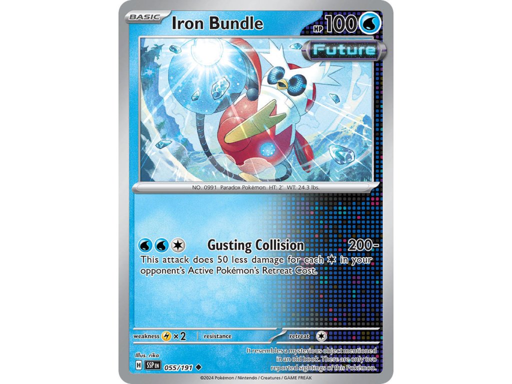Tato Pokémon TCG kusová karta Iron Bundle je z edice Surging Sparks. Tato karta je Uncommon rarity a má regulační značku H.