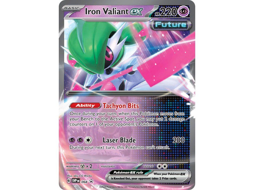 Tato Pokémon TCG kusová karta Iron Valiant ex je SV Black Star Promo. Tato karta je Promo rarity a má regulační značku G.