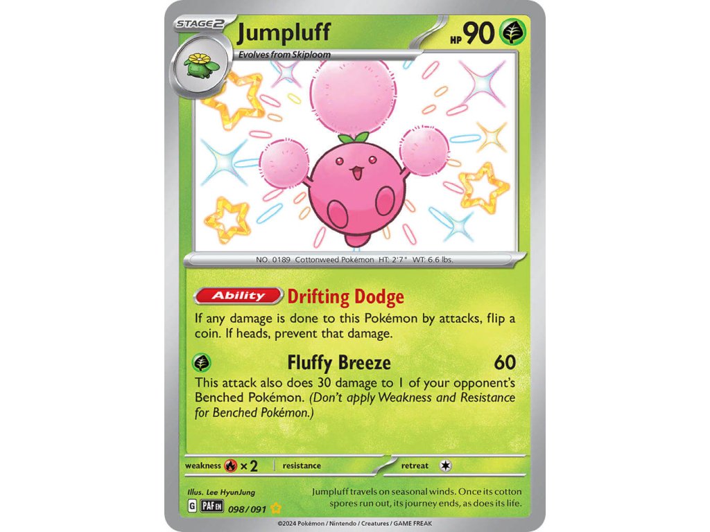 Tato Pokémon TCG kusová karta Jumpluff je z edice Paldean Fates. Tato karta je Shiny Rare rarity a má regulační značku G.