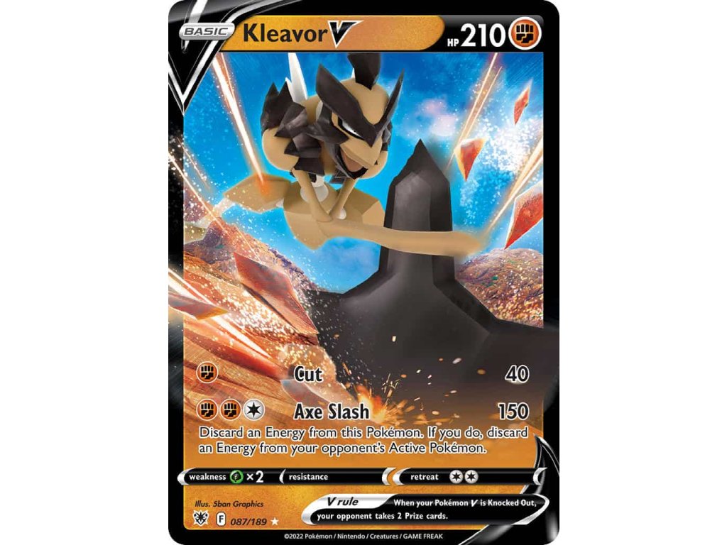 Tato Pokémon TCG kusová karta Kleavor V je z edice Astral Radiance. Tato karta je Ultra Rare rarity a má regulační značku F.