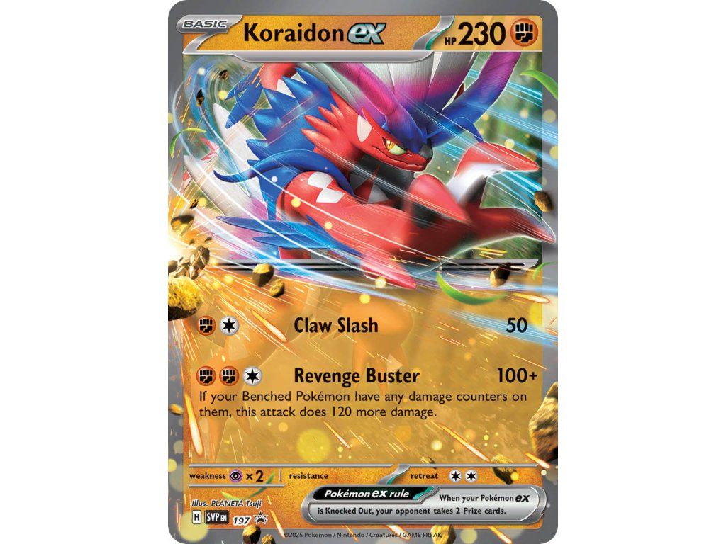 Tato Pokémon TCG kusová karta Koraidon ex je SV Black Star Promo. Tato karta je Promo rarity a má regulační značku H.