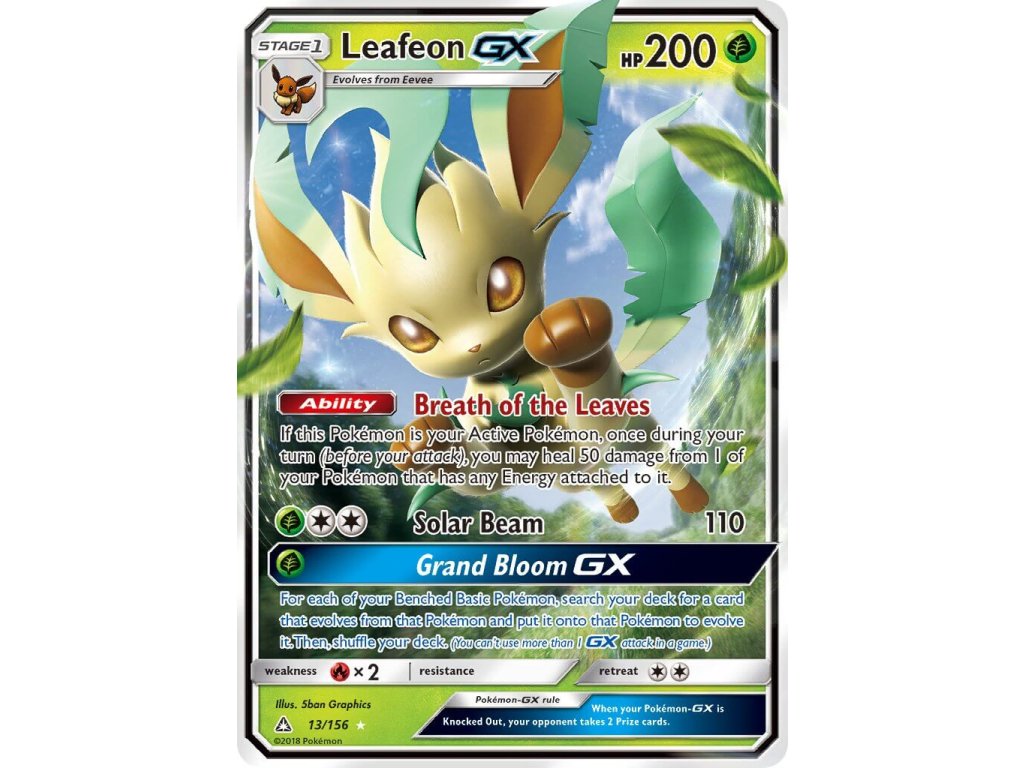 Tato Pokémon TCG kusová karta Leafeon GX je z edice Ultra Prism. Tato karta je Ultra Rare rarity.