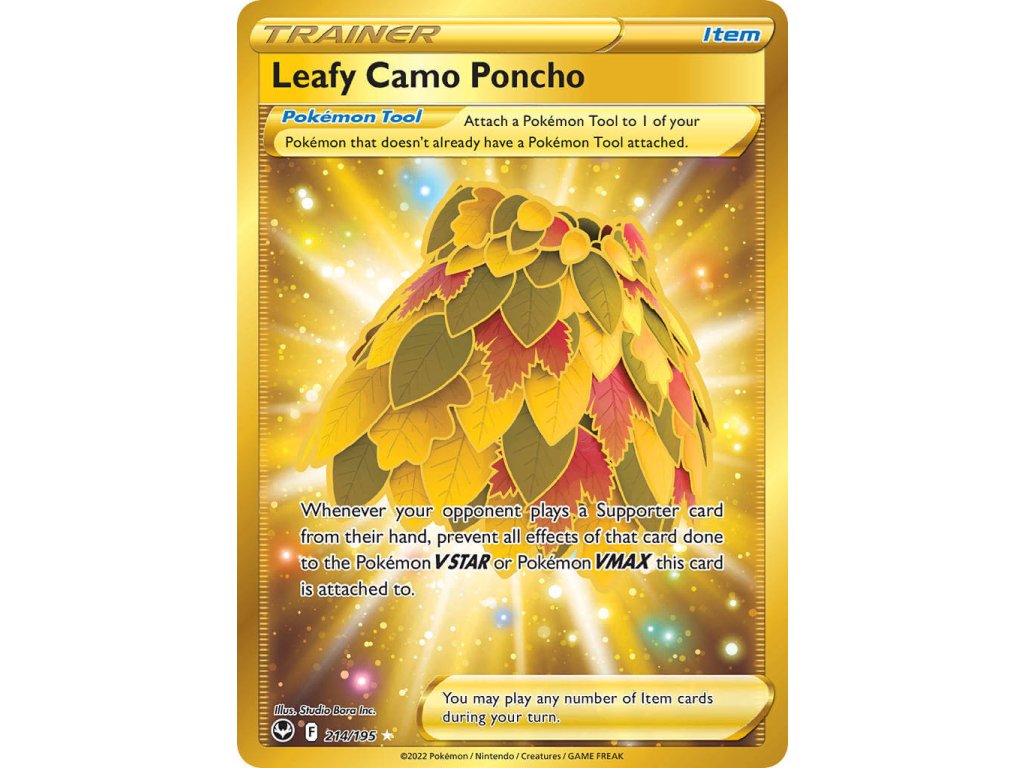 Tato Pokémon TCG kusová karta Leafy Camo Poncho je z edice Silver Tempest. Tato karta je Secret Rare rarity a má regulační značku F.