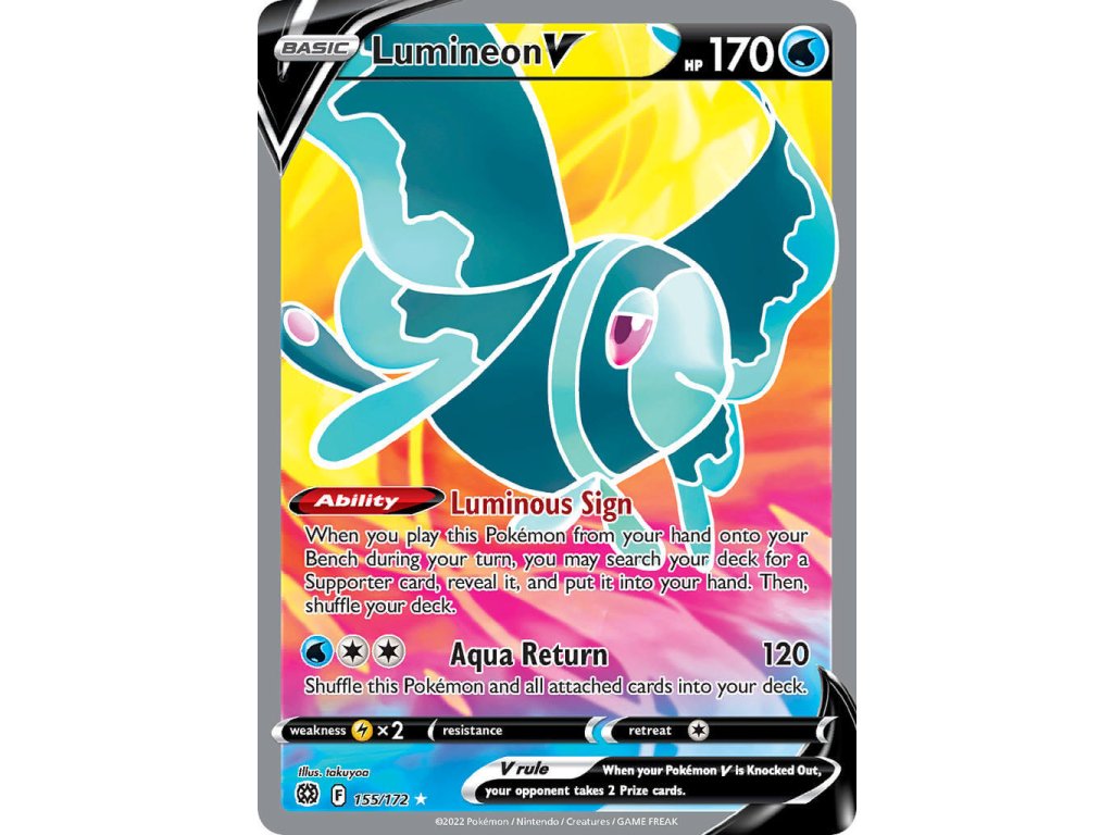 Tato Pokémon TCG kusová karta Lumineon V je z edice Brilliant Stars. Tato karta je Ultra Rare rarity a má regulační značku F.