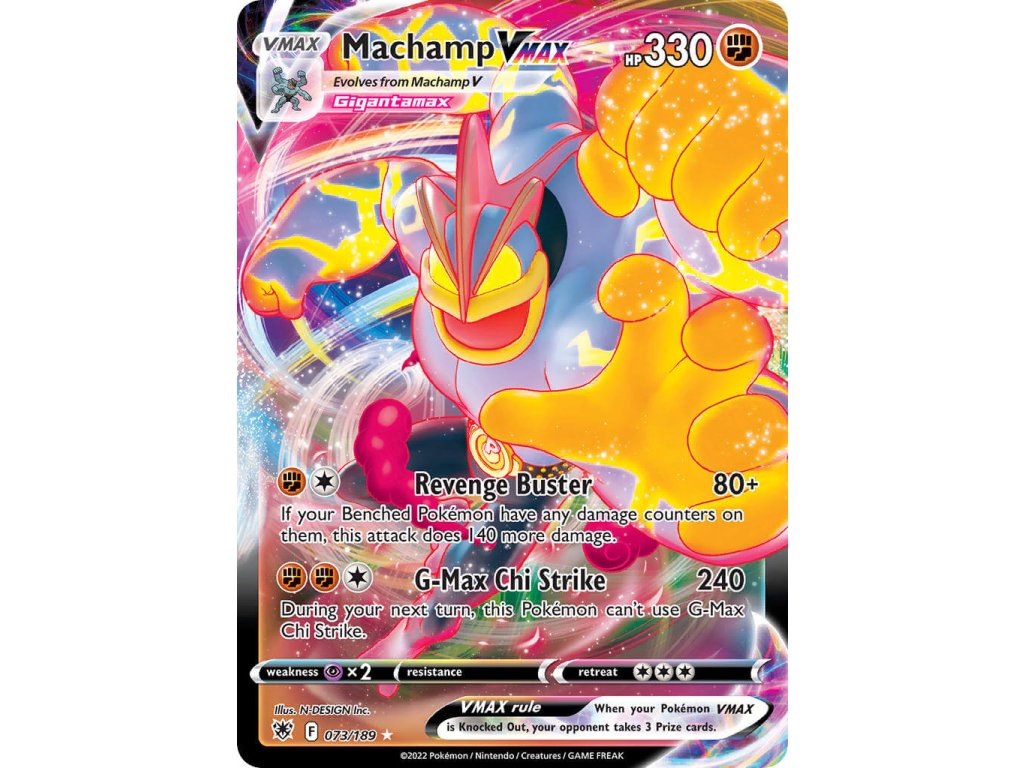 Tato Pokémon TCG kusová karta Machamp VMAX je z edice Astral Radiance. Tato karta je Ultra Rare rarity a má regulační značku F.