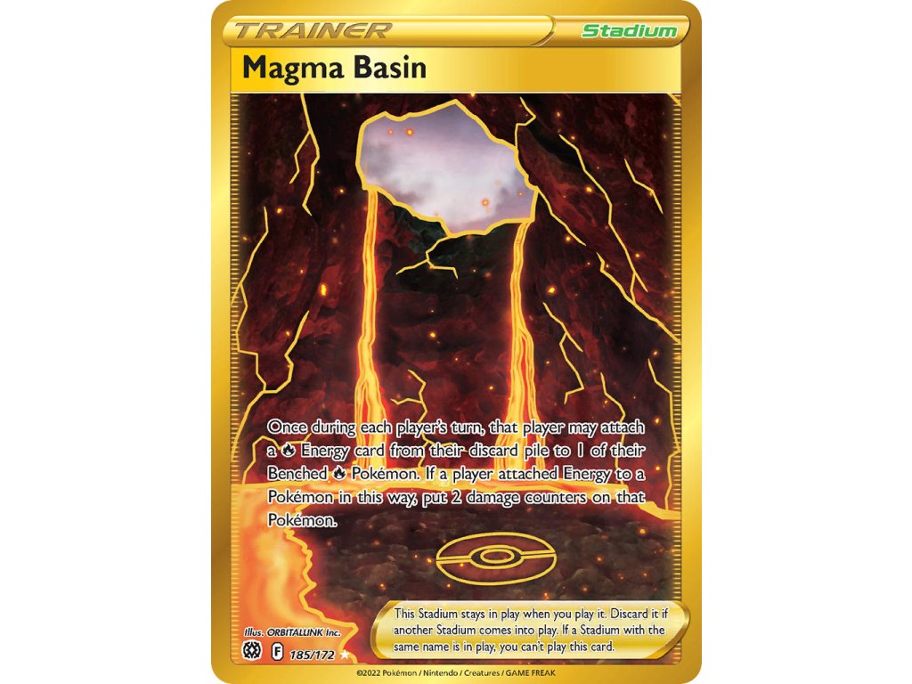 Tato Pokémon TCG kusová karta Magma Basin je z edice Brilliant Stars. Tato karta je Secret Rare rarity a má regulační značku F.