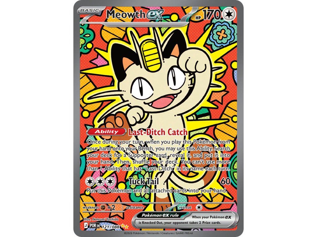 Tato Pokémon TCG kusová karta Meowth ex je z edice Perfect Order. Tato karta je Special Illustration Rare rarity a má regulační značku J.