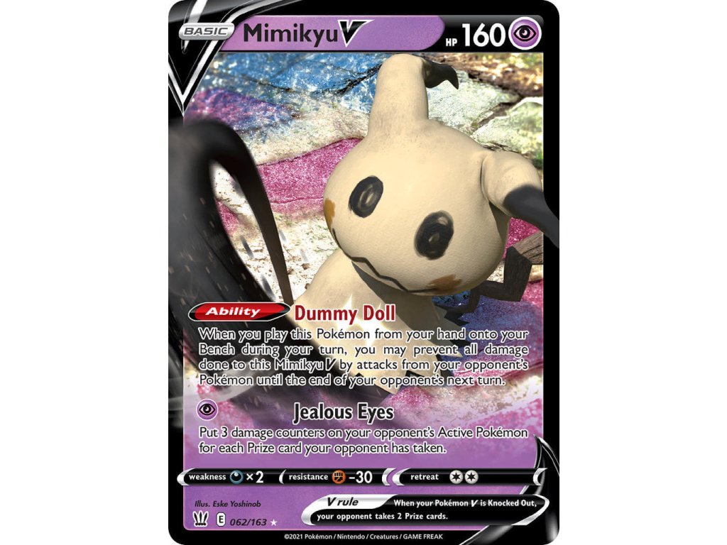Tato Pokémon TCG kusová karta Mimikyu V je z edice Battle Styles. Tato karta je Ultra Rare rarity a má regulační značku E.