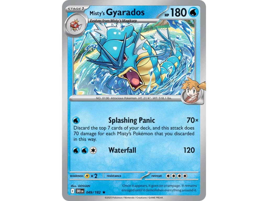 Tato Pokémon TCG kusová karta Misty's Gyarados je z edice Destined Rivals. Tato karta je Rare rarity a má regulační značku I.