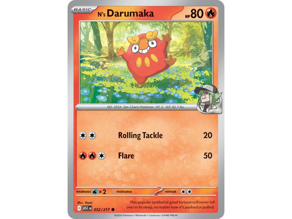 Tato Pokémon TCG kusová karta N's Darumaka je z edice Ascended Heroes. Tato karta je Common rarity a má regulační značku I.