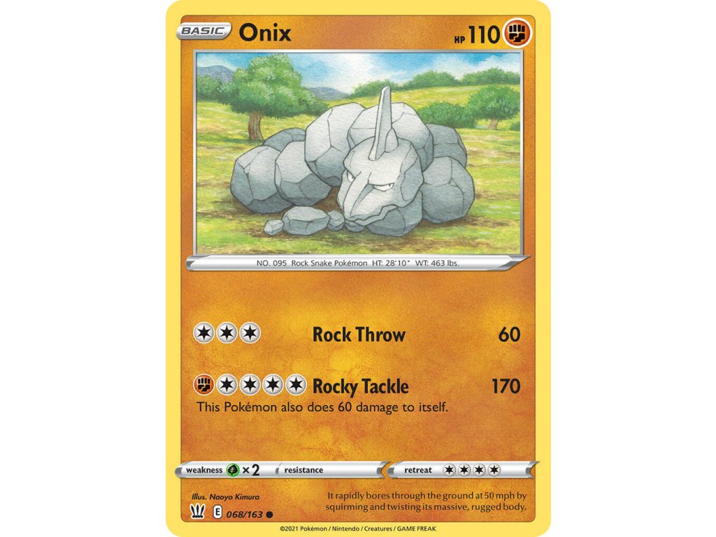Tato Pokémon TCG kusová karta Onix je z edice Battle Styles. Tato karta je Common rarity a má regulační značku E.