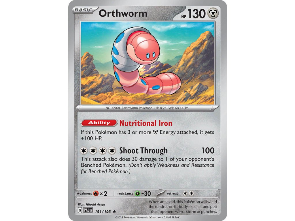 Tato Pokémon TCG kusová karta Orthworm je z edice Paldea Evolved. Tato karta je Rare rarity a má regulační značku G.