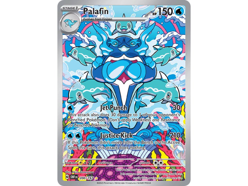 Tato Pokémon TCG kusová karta Palafin je z edice Obsidian Flames. Tato karta je Illustration Rare rarity a má regulační značku G.