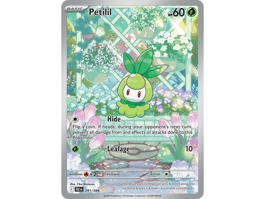 Tato Pokémon TCG kusová karta Petilil je z edice Black Bolt. Tato karta je Illustration Rare rarity a má regulační značku I.