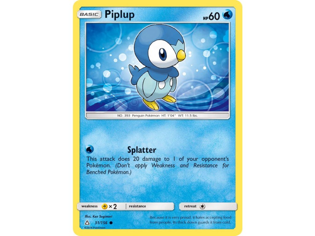 Tato Pokémon TCG kusová karta Piplup je z edice Ultra Prism. Tato karta je Common rarity.