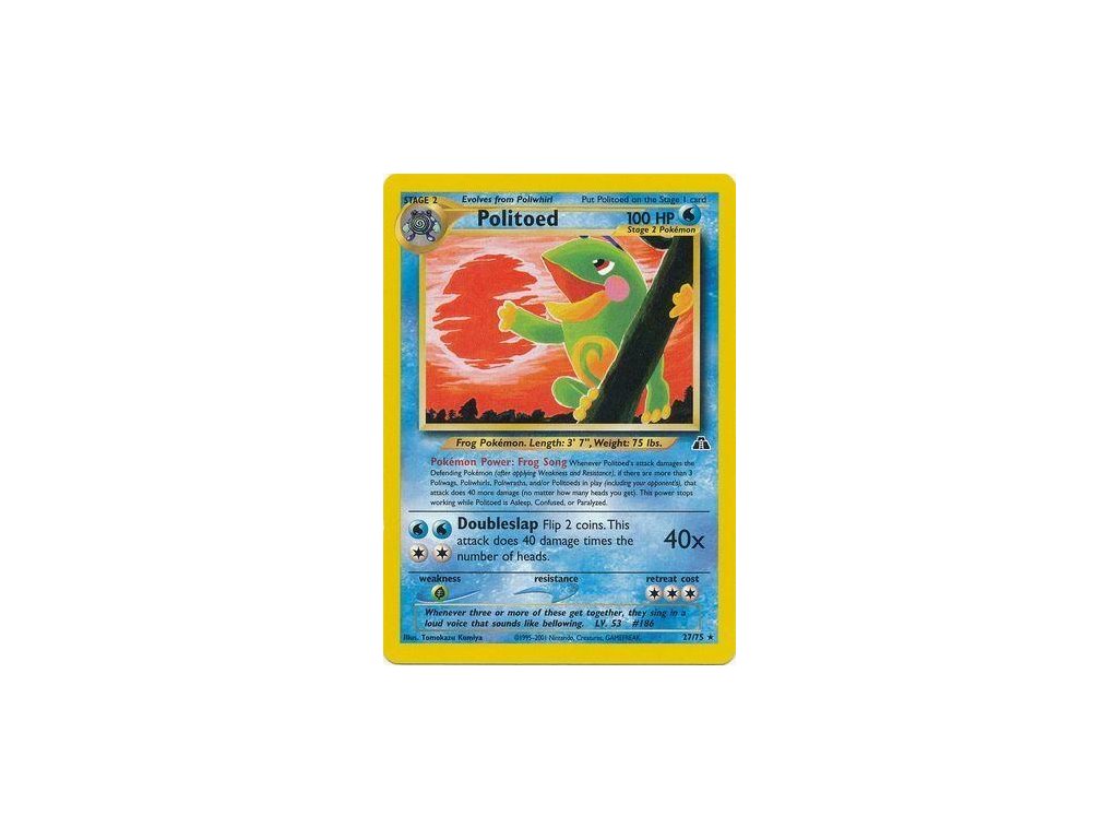 Tato Pokémon TCG kusová karta Politoed je z edice Neo Discovery. Tato karta je Rare rarity.